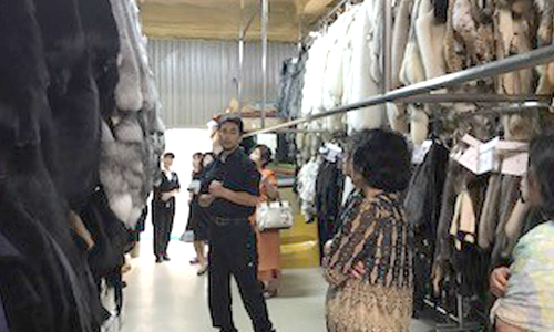 毛皮は冬だけなので、現在は鹿の皮「キョンセーム」と鹿革に漆でデザインをする印伝を作成していました。全国シェアの95%は春日さんが占めているとのお話でした。とっても興味深いお話を聞くことができた時間でした。